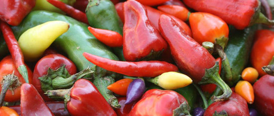 Chili (red chili) contains some amounts of vitamin C and vitamin A. Yellow, and especially green chili (which are essentially unripe fruit), contain a considerably lower amount of both substances. Peppers are a good source of most B vitamins, and vitamin B6 in particular. They are very high in potassium and high in magnesium and iron. Their high vitamin C content can also substantially increase the uptake of nonheme iron from other ingredients in a meal, such as beans and grains.