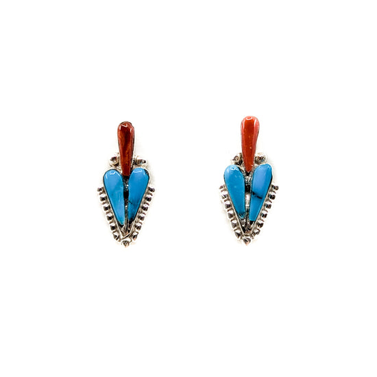 • Turquoise and coral stones set in sterling silver decorative bezels