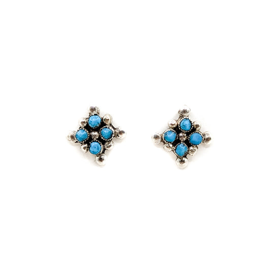 • Handcrafted sterling silver and turquoise four stone petit point stud earrings by Calvin Lamy