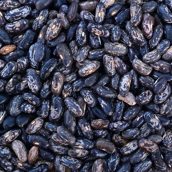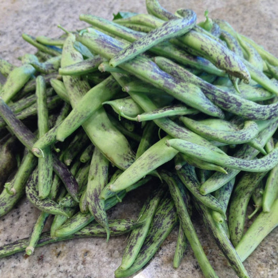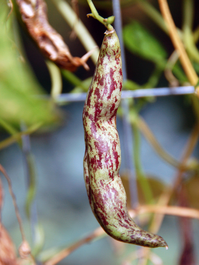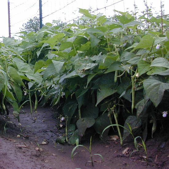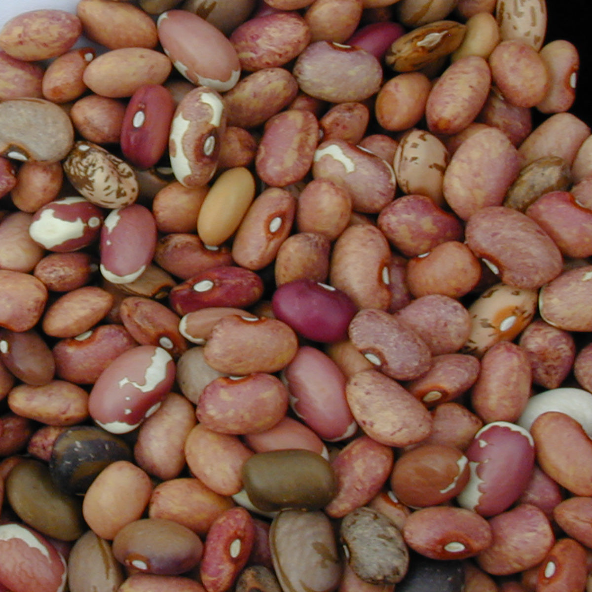 Common beans (Phaseolus vulgaris) are a diverse and important crop to Native American farmers throughout the Southwest. They are eaten young as green beans or dried and shelled. Plants can be bush, semi-pole, or pole. Native to the New World, beans are a traditional protein complement to corn, rich in minerals, with a variety of tastes and colors. Members of the legume family, beans fix nitrogen from the air if certain bacteria are present in the soil to infect the roots. Beans also contain soluble fiber helpful in controlling cholesterol and diabetes.
