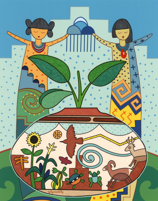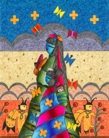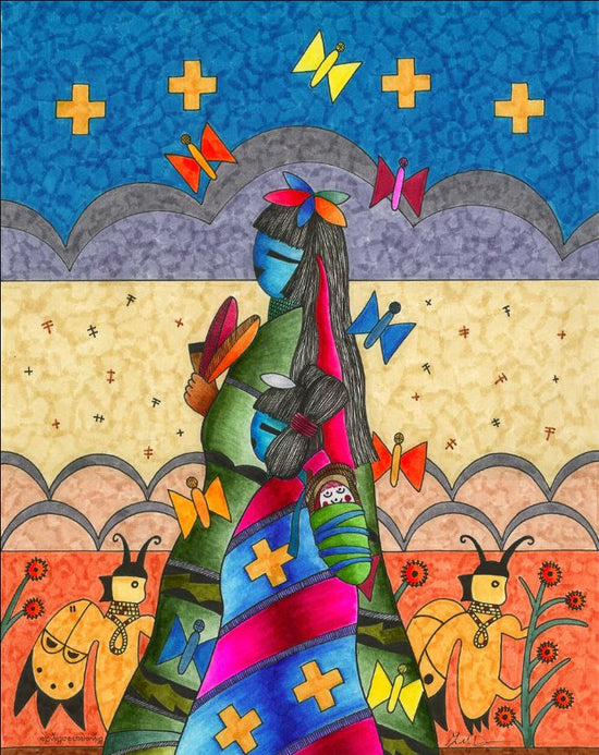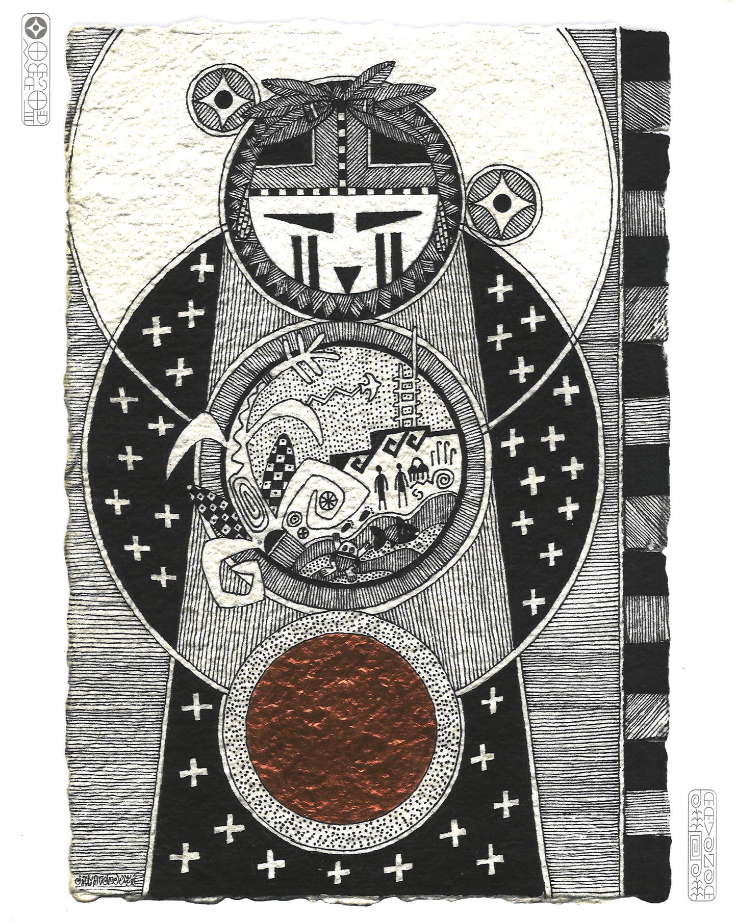 Gerald grew up in the Hopi village of Munqapi and the Cherokee woods of Oklahoma. Gerald's interest in art led to a Bachelor's Degree in Fine Art from the University of Arizona in Tucson. After completing his degree, Gerald worked with the Arizona State Museum as an exhibit specialist and interned with the National Museum of American Indian, Smithsonian Institute. His internship led to a children's book entitled "The Butterfly Dance", in which Gerald is Author and Illustrator. His work includes a Hopi mural that is part of the permanent collection at the Arizona State Museum, which also accepted a design that is now the official logo for this 124-year-old-plus institution. In 1994, he created artwork depicting the cosmos sent aboard the Space Shuttle Endeavor. For the U of A's new Student Union Complex, Gerald created a series of panels containing native imagery forming the main staircase. Recent work includes his new book entitled "Codex Taawa" which is available through Native Seeds/SEARCH.