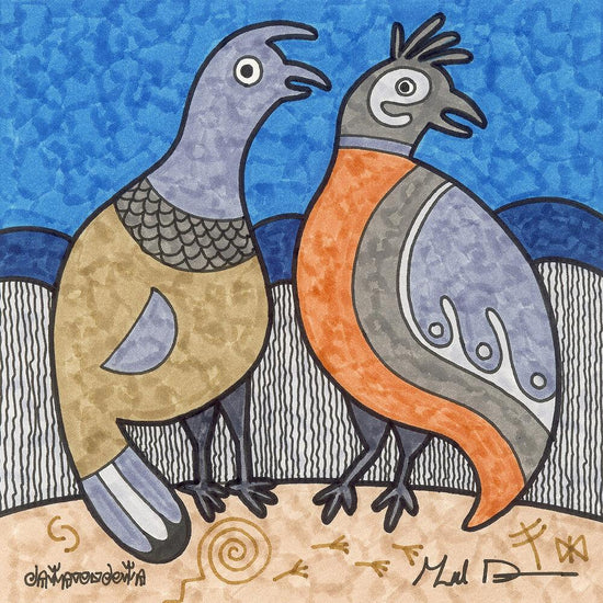 Gerald grew up in the Hopi village of Munqapi and the Cherokee woods of Oklahoma. Gerald's interest in art led to a Bachelor's Degree in Fine Art from the University of Arizona in Tucson. After completing his degree, Gerald worked with the Arizona State Museum as an exhibit specialist and interned with the National Museum of American Indian, Smithsonian Institute. His internship led to a children's book entitled "The Butterfly Dance", in which Gerald is Author and Illustrator. His work includes a Hopi mural that is part of the permanent collection at the Arizona State Museum, which also accepted a design that is now the official logo for this 124-year-old-plus institution. In 1994, he created artwork depicting the cosmos sent aboard the Space Shuttle Endeavor. For the U of A's new Student Union Complex, Gerald created a series of panels containing native imagery forming the main staircase. Recent work includes his new book entitled "Codex Taawa" which is available through Native Seeds/SEARCH.