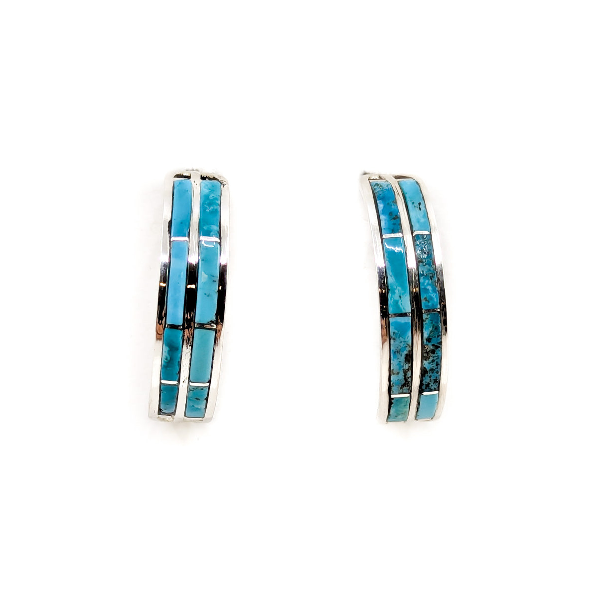Double Row Turquoise Channel Inlay Hoop Earrings