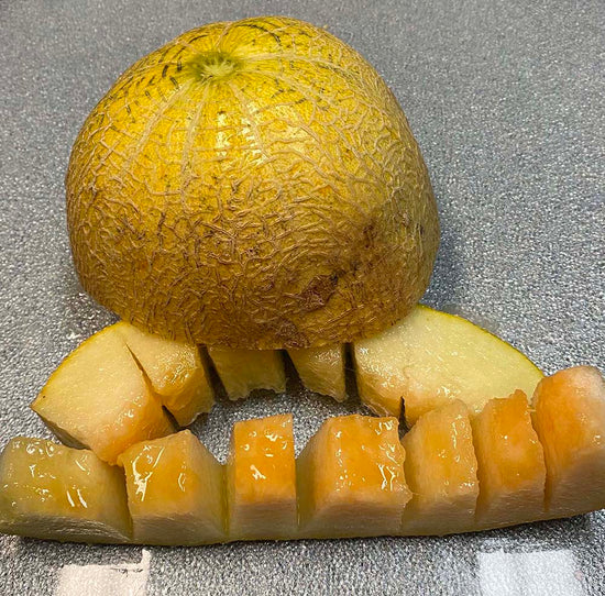 • Cucumis melo. Collected in the Black Mesa area of the Navajo Nation, this is a variable melon. Mostly cantaloupe and some honeydew types included. Round and oblong shapes, skin may be smooth or netted.  Our partner farmer says the fruit tastes like cantaloupe and honeydew combined.  From our Seed Bank Collection.