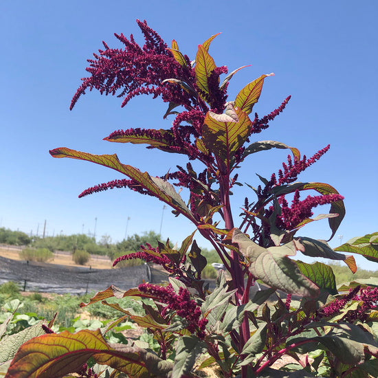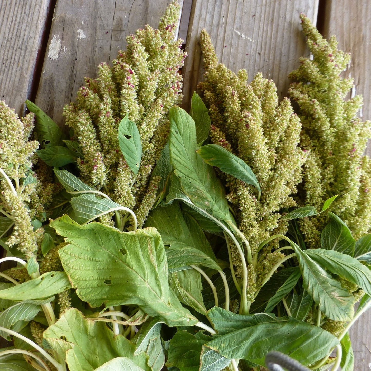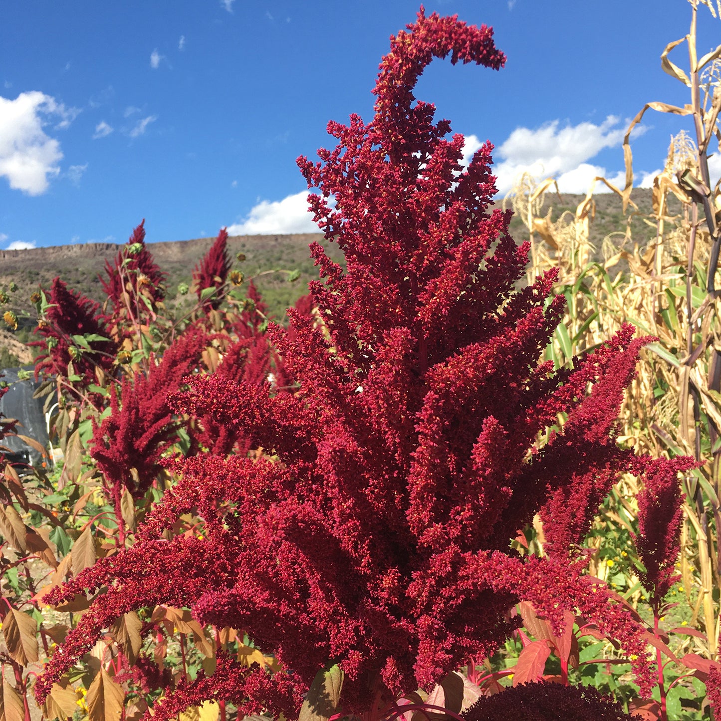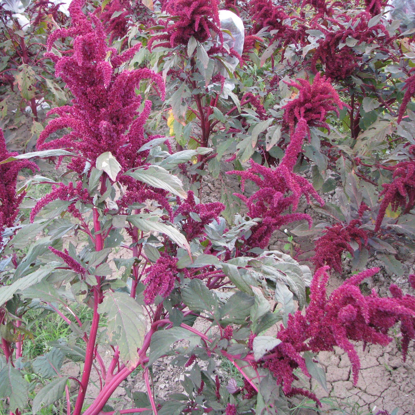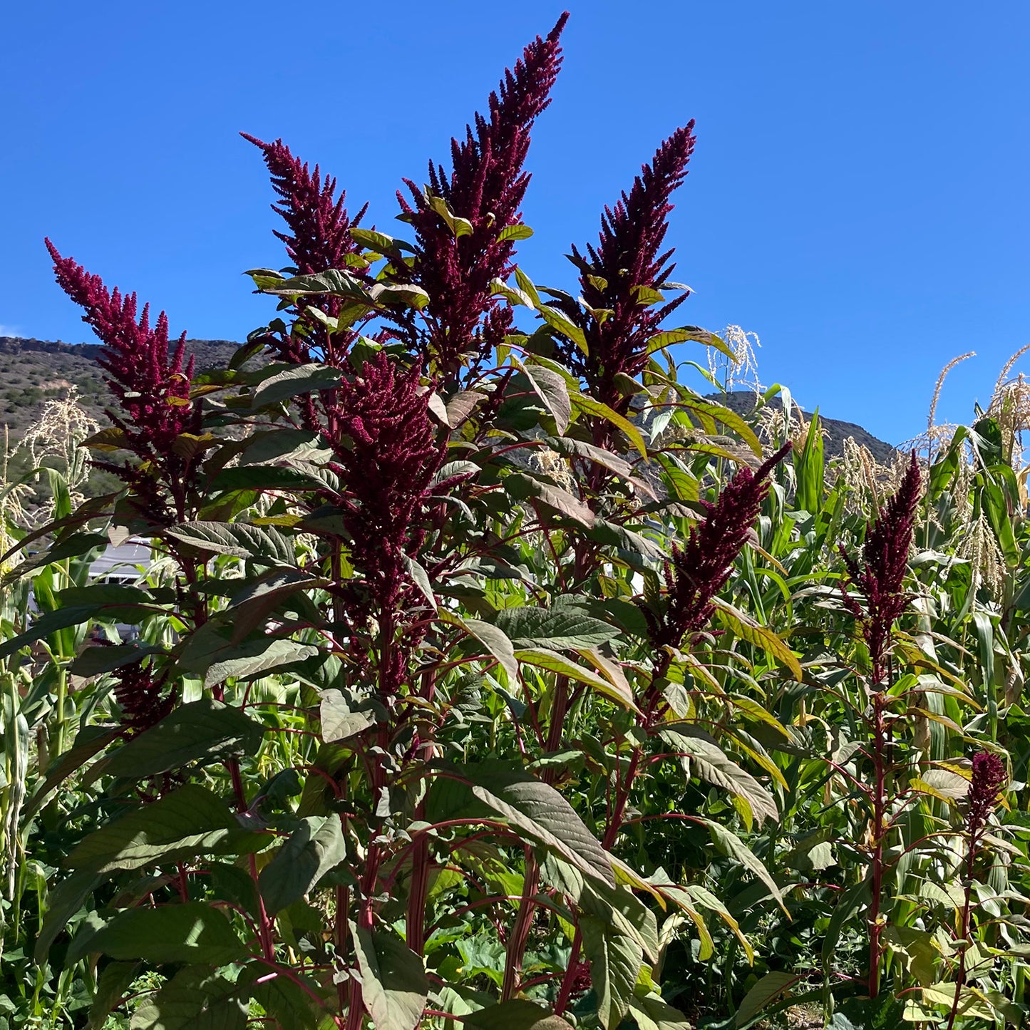 Amaranthus spp. Grown by the Aztecs and by Southwestern Native Americans for millennia. Amaranth is a versatile crop that is edible in many ways. The young leaves are a great source of vitamins and are high in calcium and iron. The small grain is naturally gluten free, rich in lysine and can be toasted and popped, ground into flour, or eaten whole. Mature roots can even be be eaten, similar to a parsnip.