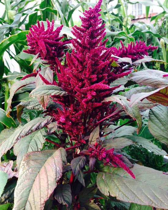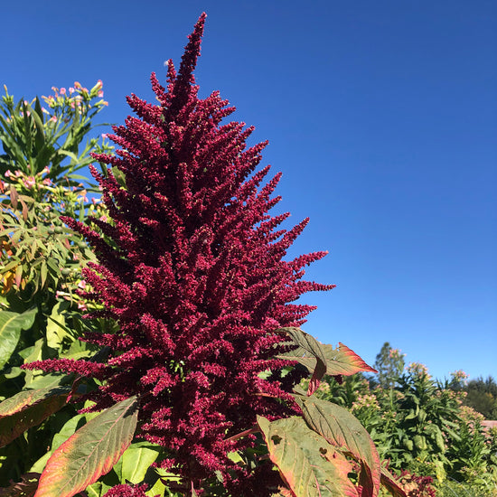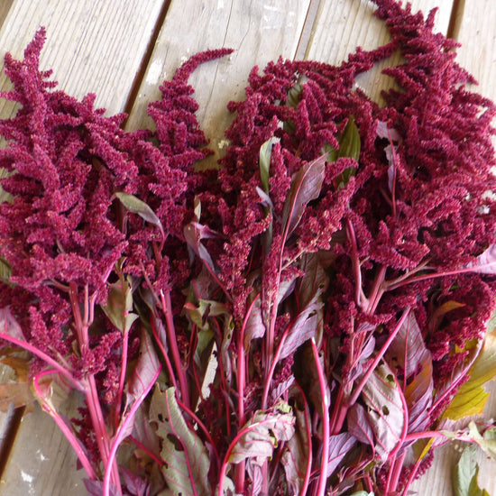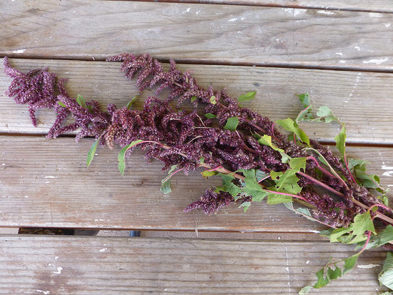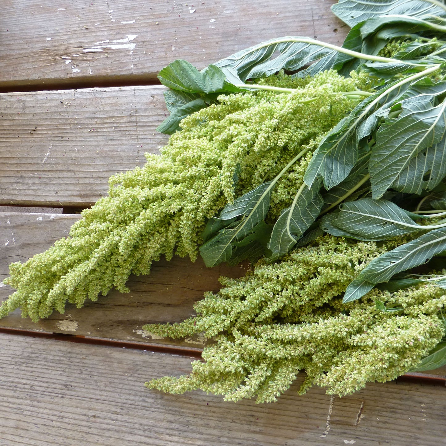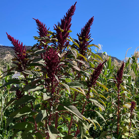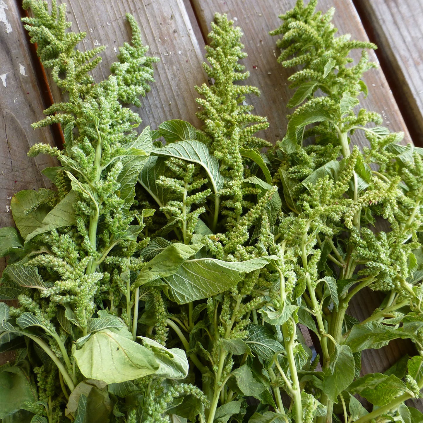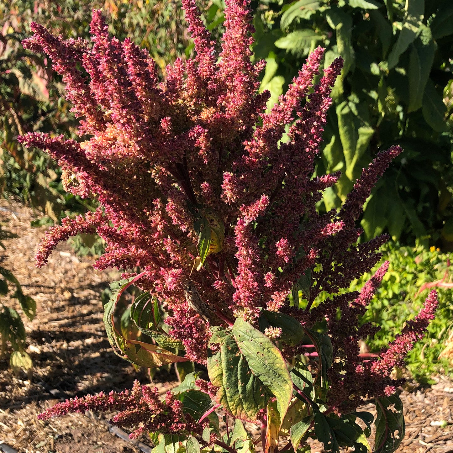 Amaranthus spp. Grown by the Aztecs and by Southwestern Native Americans for millennia. Amaranth is a versatile crop that is edible in many ways. The young leaves are a great source of vitamins and are high in calcium and iron. The small grain is naturally gluten free, rich in lysine and can be toasted and popped, ground into flour, or eaten whole. Mature roots can even be be eaten, similar to a parsnip.
