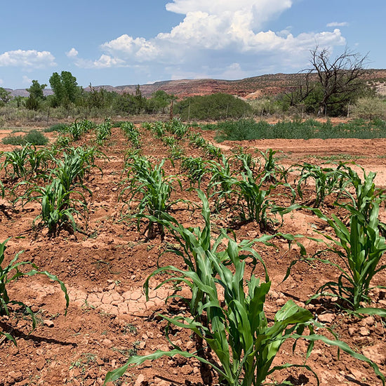 We suggest planting a minimum of 15-30 plants. With less you are likely to get poor pollination, and few kernels on your ears of corn. 100 plants or more are best for pollination and for good genetic diversity in the seeds you save from your harvest. You can learn more about growing corn (including hand pollination) here.
