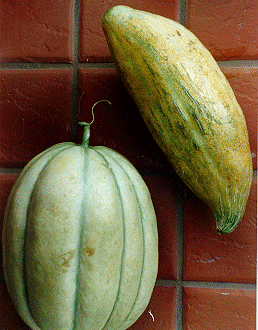 • Cucumis melo. Our original seed was obtained from a melon entered in the Navajo Nation Fair in Shiprock, New Mexico. Produces three fruit types: ribbed, smooth ovals, and elongated. Mild flavored flesh is pale green to light orange.From our Seed Bank Collection.
