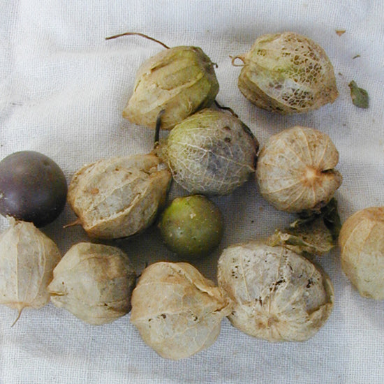 • Physalis philadelphica. Husked fruit are small and plants are somewhat sprawling. Commonly used in salsa. From Mountain Pima country, Nabogame, Chihuahua. From our Seed Bank Collection.