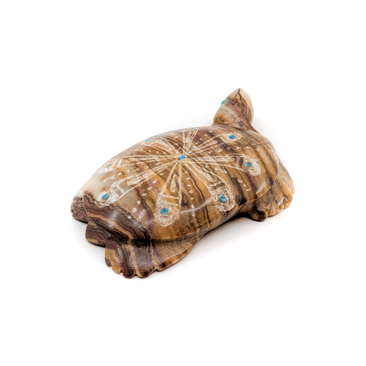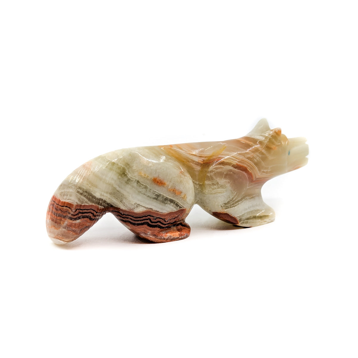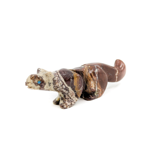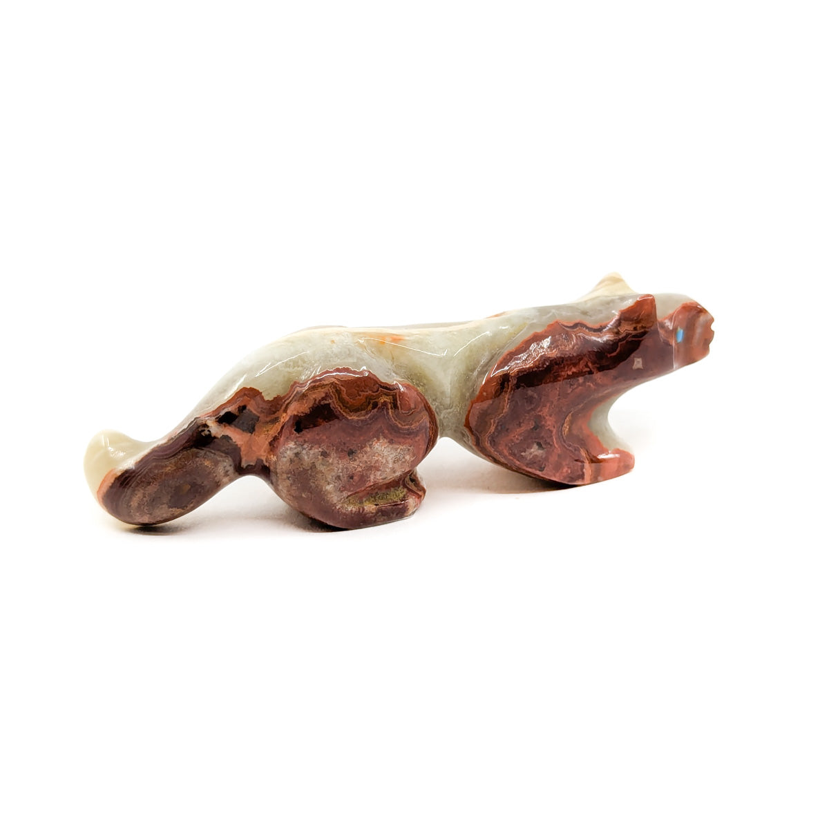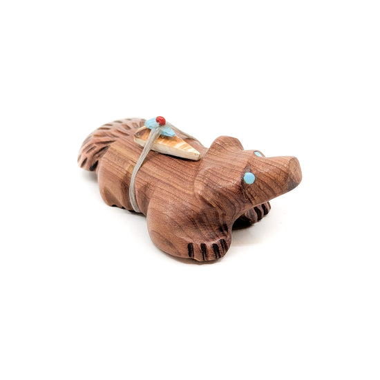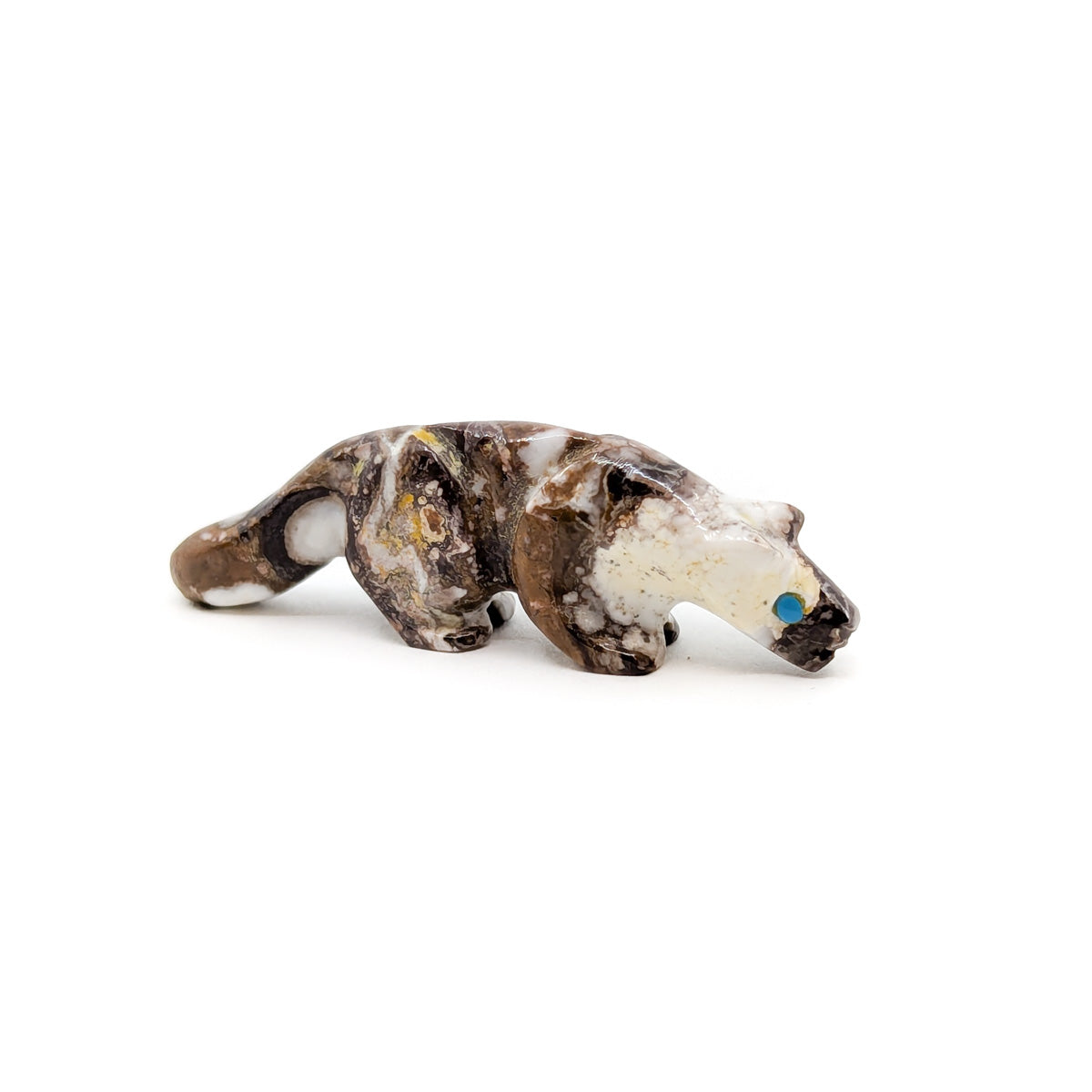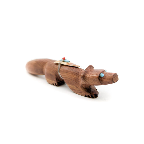 Zuni carvings, also known as "fetishes", are small animal sculptures made primarily from stone but also from shell and other natural materials which are hand carved by Zuni and other Pueblo artisans. These animal carvings often represent specific desirable attributes such as healing, protection and good luck. Many families will be known for a distinct style of carving or they may have an affinity for carving certain animals. Sometimes an animal will have the addition of a heartline which signifies increased vitality, or the magnification of what a specific animal represents, or the fetishes may carry a medicine bundle or "offering" of an arrowhead or small beads as a gift of thanks from the carver to the spirit of the animal for whatever blessings it may bring.