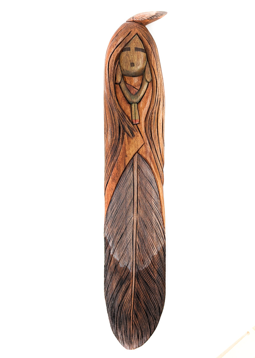 • Feather Maiden wall hanging with Eagle Feather body adorned with feather on head