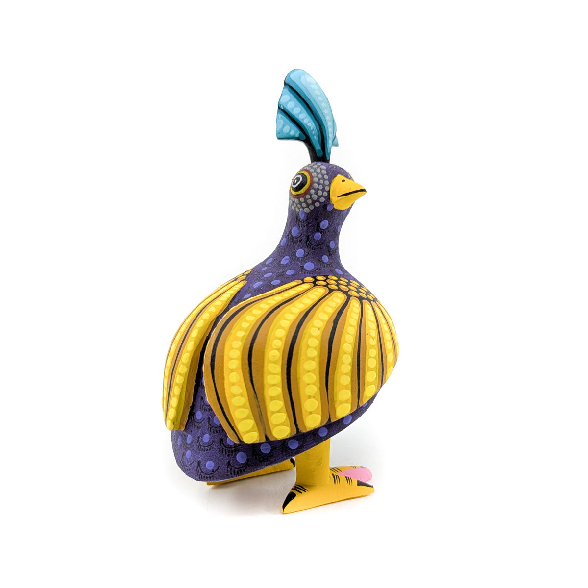 Finely Painted Purple Quail with Yellow Wings and Teal Top Knot