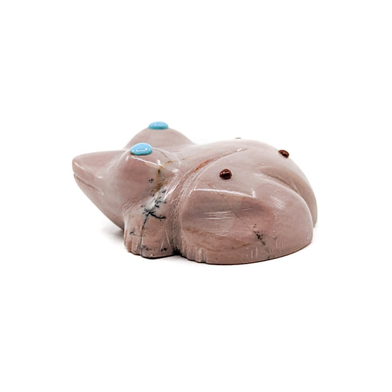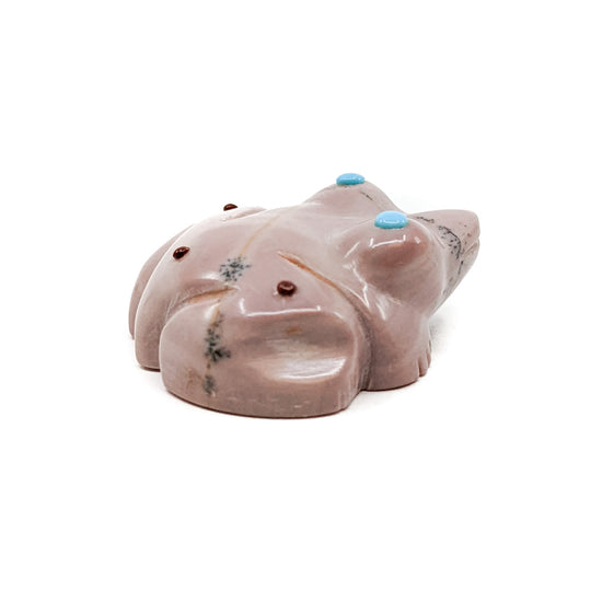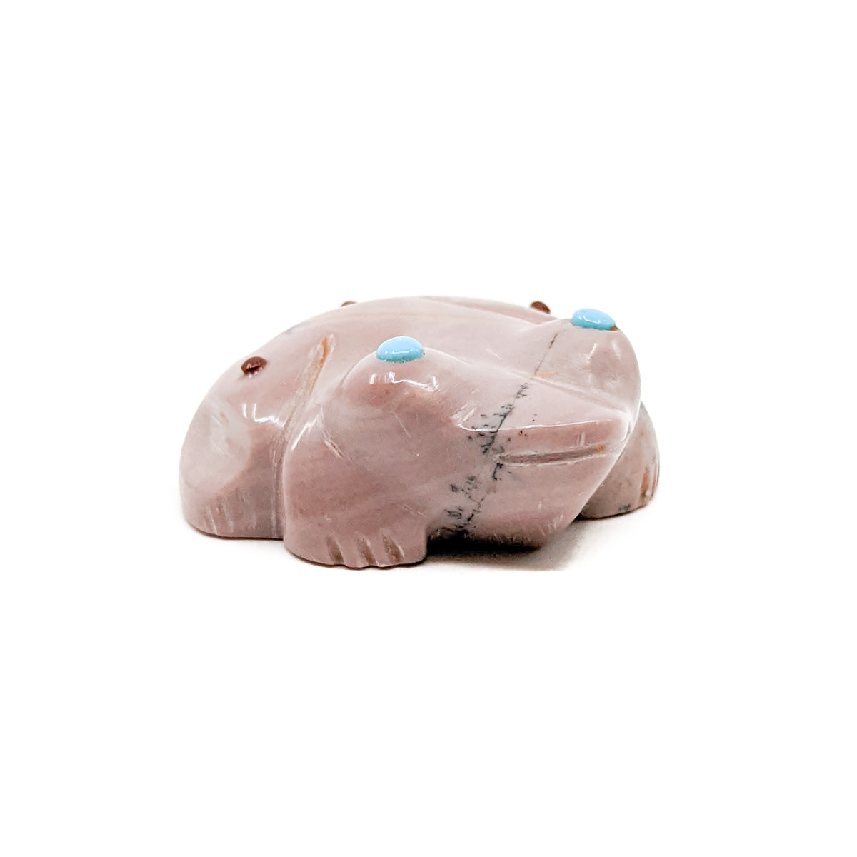 • Dolomite Frog carving with Turquoise eyes, and Red Coral Accents