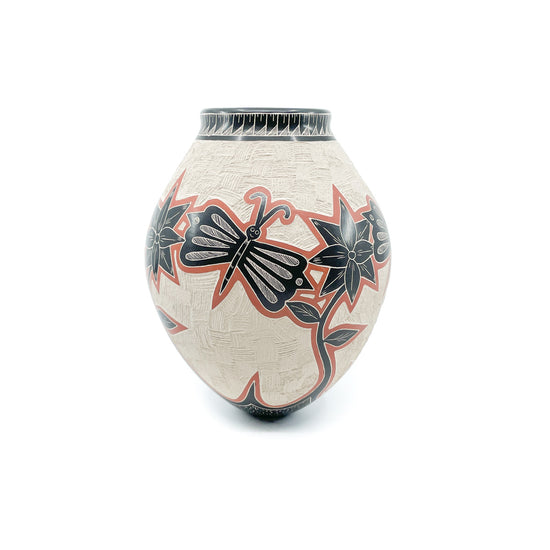 Incised Dragonflies and Flowers on White Clay Pot