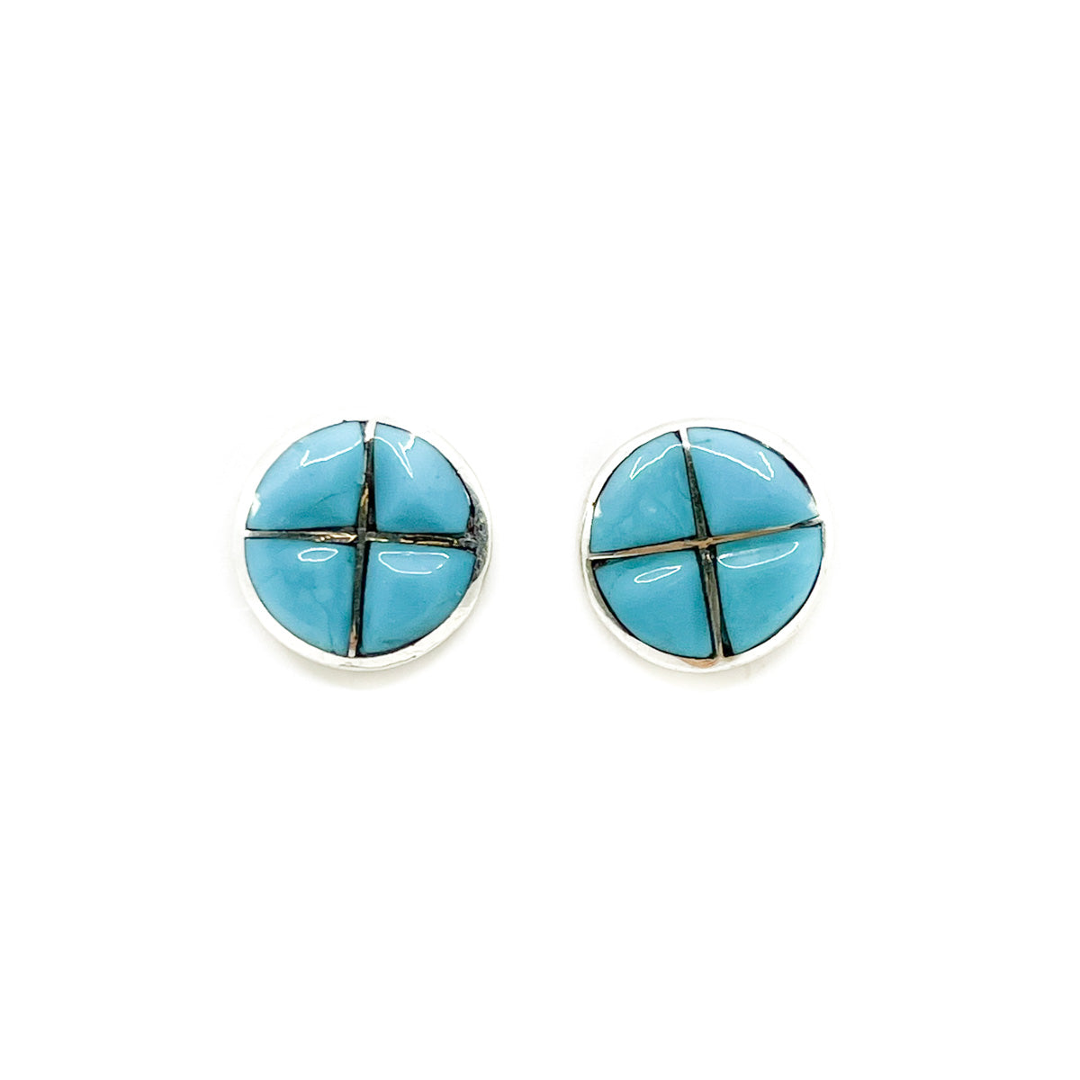 • Sterling silver and inlaid turquoise stud earrings with 4 channels