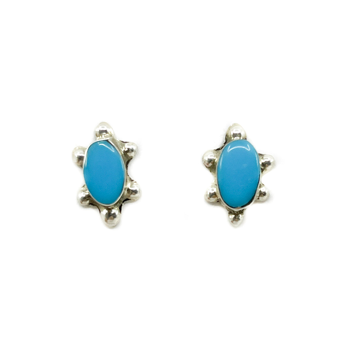 • Small carved turquoise turtle stud earrings in sterling silver setting