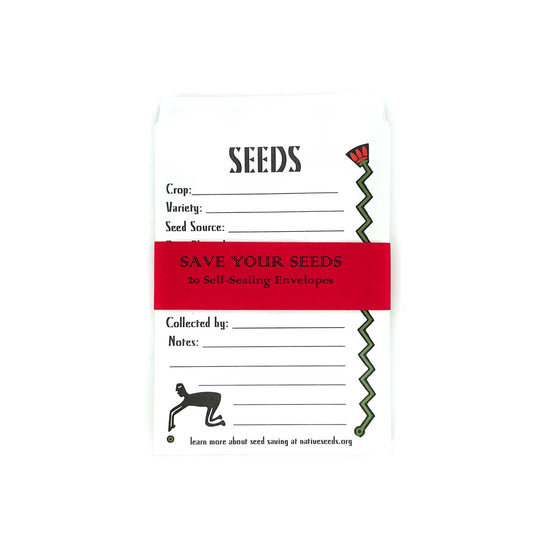 • These packets are the perfect place to keep the seeds you save from your garden.  Keeping pertinent information with your seeds is almost as important as saving them in the first place!  These packets are printed to remind you of all the important data to keep.  Paper is a good choice for seed-storing as it will allow small amounts of moisture remaining in the seeds to disperse.  The envelopes are 3.25 x 4.5 inches, the size of an ordinary seed packet, and have a tear-off strip for easy sealing. Feel good about these packets ... they are printed on FSC & SFI certified recycled paper with 30% post-consumer content, 100% Green-e energy.