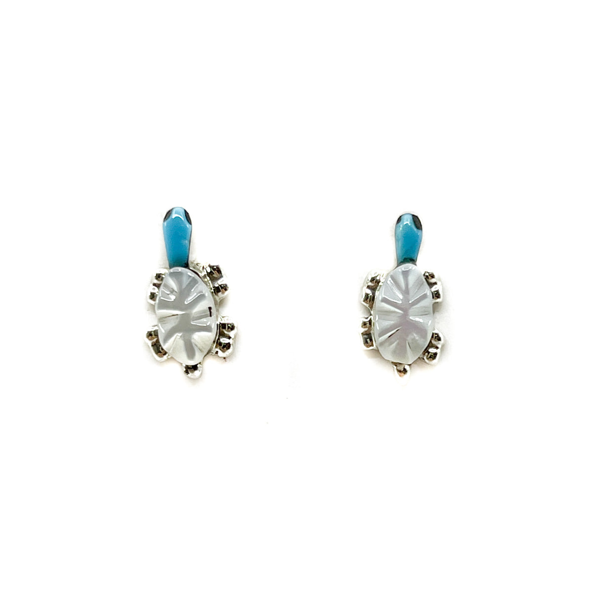 • Handcrafted sterling silver and turquoise tiny tortoise earrings with sterling silver posts and backs. Look closely and you'll even see tiny eyes on the turtle!