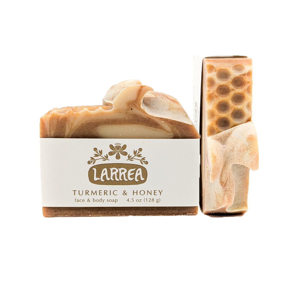 • This luxurious soap illuminates and rejuvenates the skin with turmeric, local honey, and fresh goat’s milk. Specially formulated for the face with oils and butters that do not clog pores, the rich, creamy lather will leave your feeling soft, smooth, and refreshed!